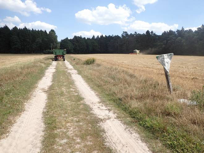 Heimbucher Weg 15.53 Uhr / Km 45 ... und das sah genauso aus wie auf einem der vielen Fotos, die Christian vorab bei Facebook eingestellt hatte. Hier verließ ich nun den Freudenthalweg, dem ich seit Marmstorf gefolgt war. Am Folgetag käme ich hierher zurück und dann ging es auf dem Freudenthalweg weiter. |