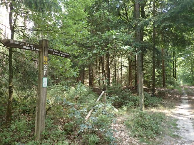 Meninger Holz 15.51 Uhr / Km 45 Und so ging es nun vorrangig wandernd weiter. Eilig hatte ich es nicht. Bei der Abzweigung könnte ich ja noch erneut rechnen. |