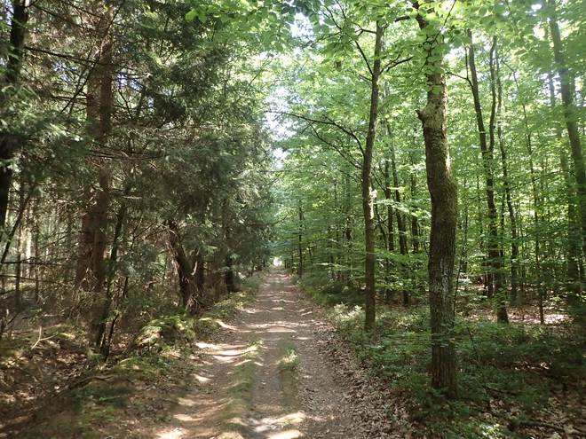 15.00 Uhr / Km 38 Das sah nach viel Freifläche aus, aber auch nach Wald und Schatten. |