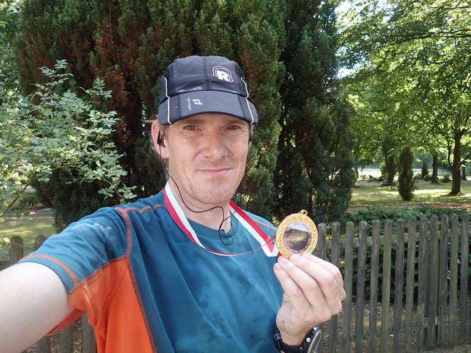 Undeloh Heimbucher Straße 16.12 Uhr / Km 46,6 Die erste Medaille war da. Insgesamt meine Marathon-Medaille Nr. 255. Und mein Ultra-Marathon Nr. 20. |