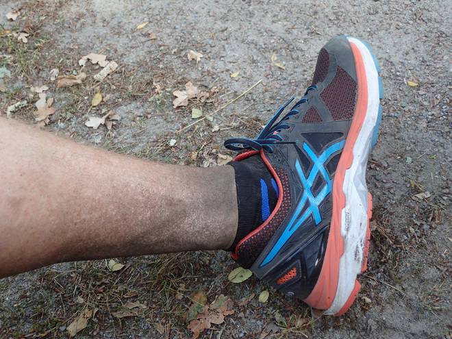 Heimbucher Weg 15.56 Uhr / Km 45 Ich war froh genug, bei der Hitze bis hier so gut gelaufen zu sein, da brauchte es am Ende keine Harakiri-Aktion. |