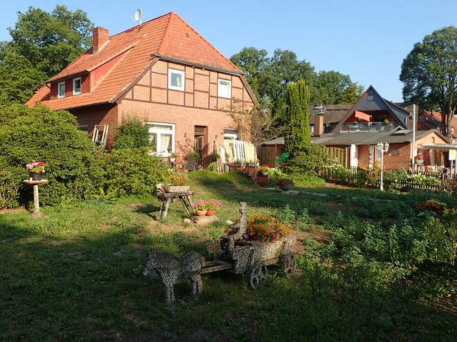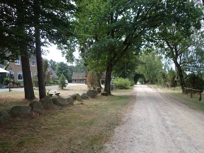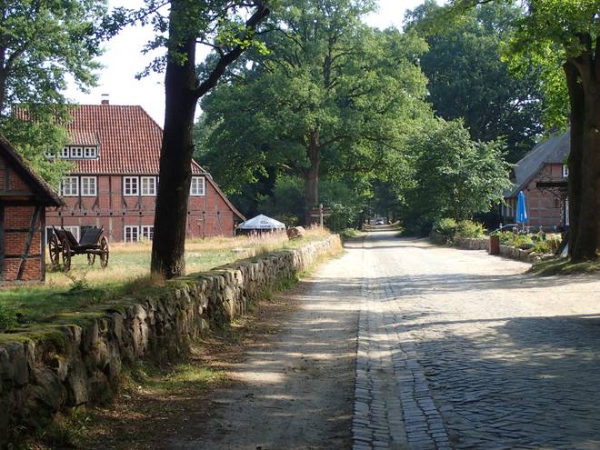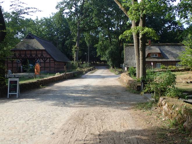 Wilsede Dorfstraße 9.55 Uhr / Km 6 Wilsede ist mit seinen 46 Einwohnen nicht direkt ein Museumsdorf, erweckt aber den Anschein. |