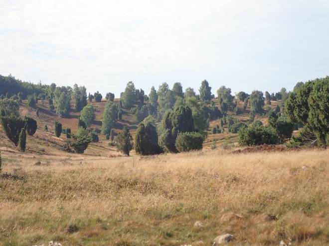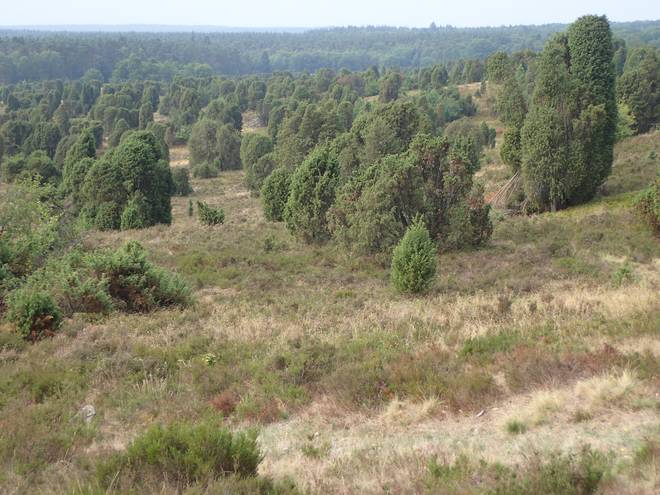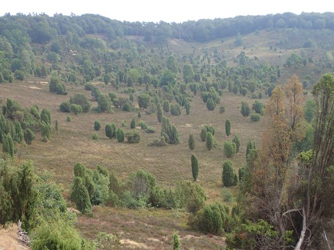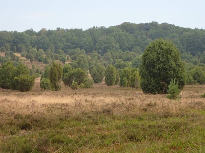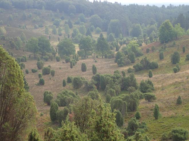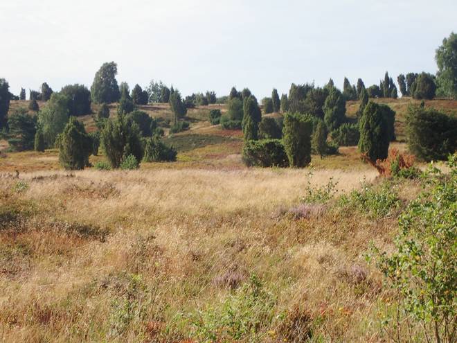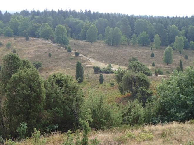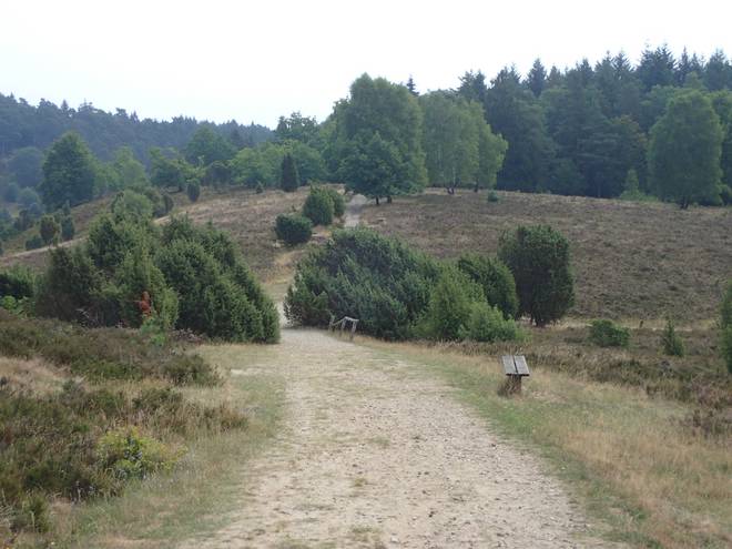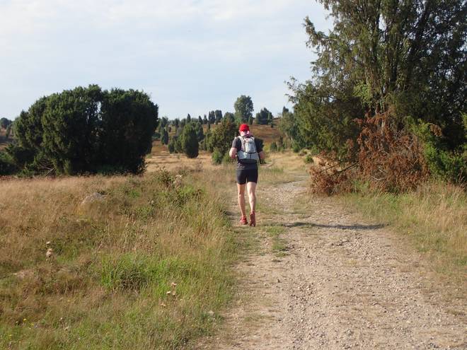 Wilseder Berg 9.41 Uhr / Km 4 Richtig toll soll es hier ja erst aussehen, wenn die Heide blüht. Vielleicht habe ich das nächste Mal mehr Glück. Aber das hier fand ich schon schön genug. |