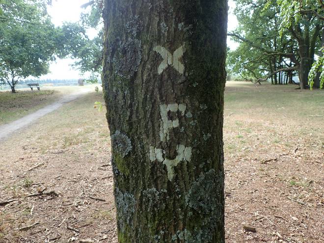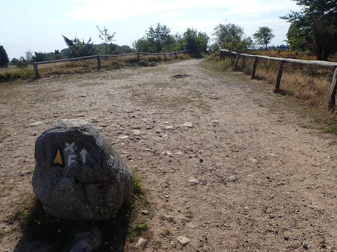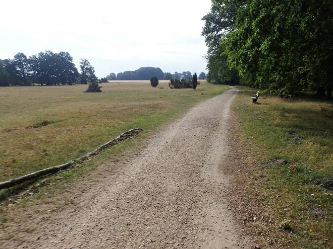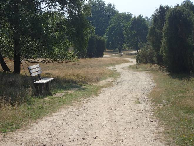Hermann-Löns-Weg 10.02 Uhr / Km 7 Etwas Schatten gab es dann doch, trotzdem hatte ich das große Verlangen, auch den zweiten halben Liter aus dem Rucksack auszutrinken. Dann hätte ich für die kommenden sieben Kilometer aber nichts mehr gehabt. |