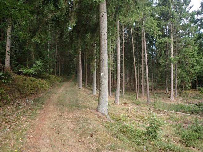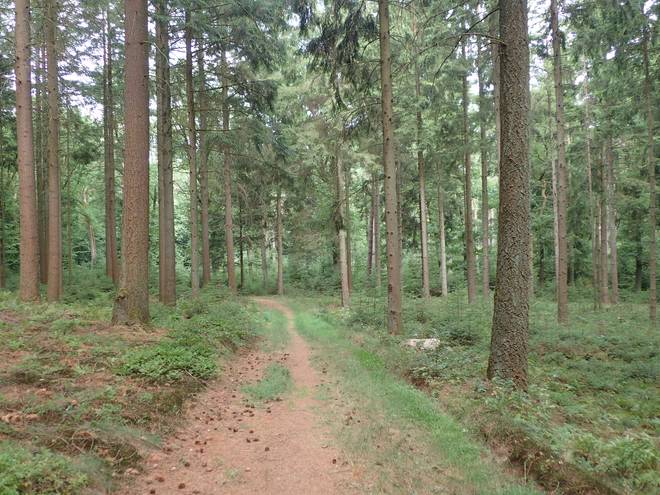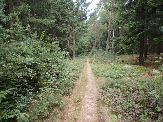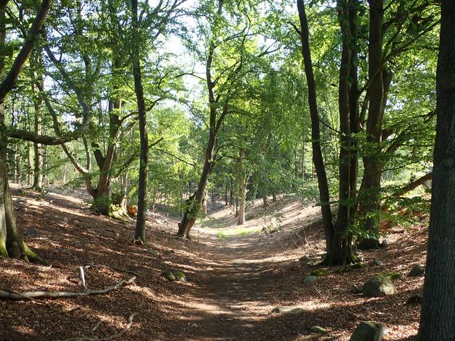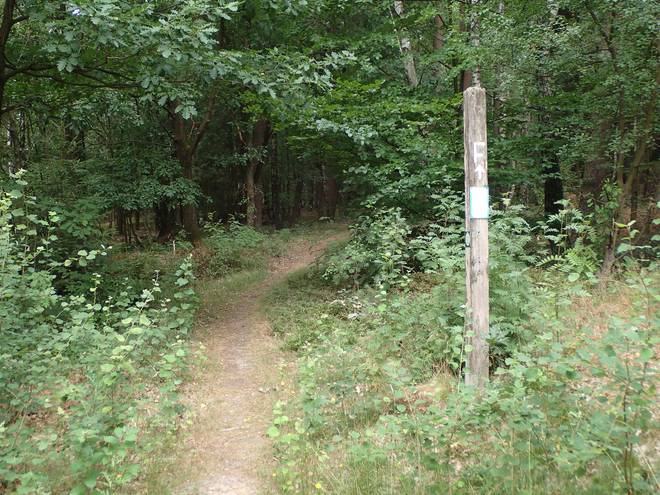9.50 Uhr / Km 5 Statt direkt nach Wilsede zu laufen, machte der Weg noch einen Bogen durch ein Stück Wald. |