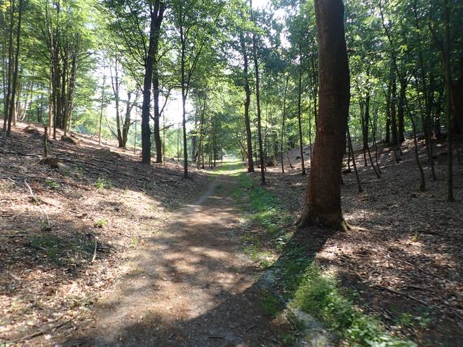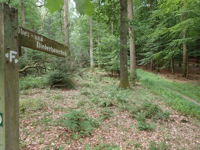 Oberhaverbecker Holz 10.25 Uhr / Km 10 Endlich mal etwas Wald. Aber auch Höhenmeter. |