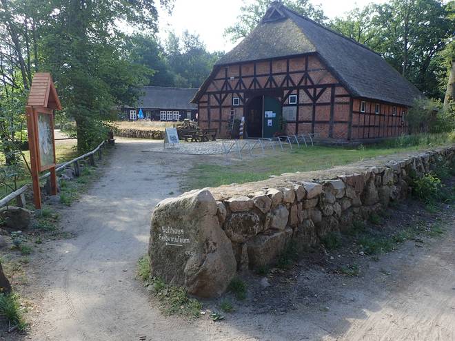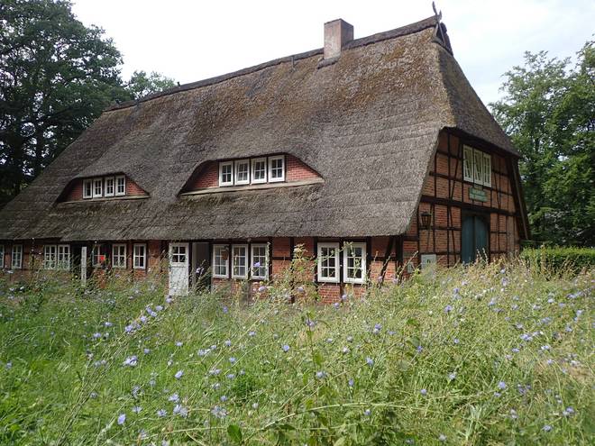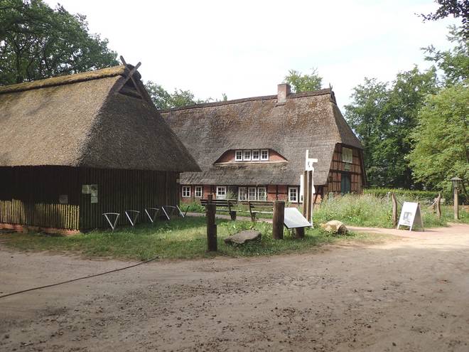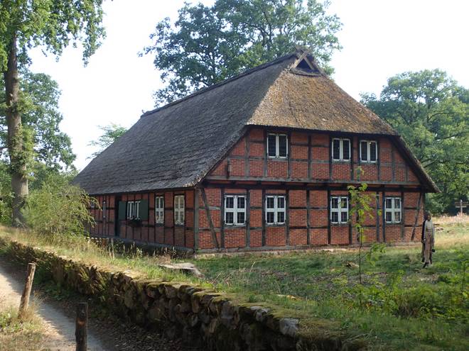 Wilsede Dorfstraße 9.57 Uhr / Km 6 Dat oole Hus, bereits 1907 als Heidemuseum gegründet und damit eines der ältesten Freilichtmuseen Deutschlands. |