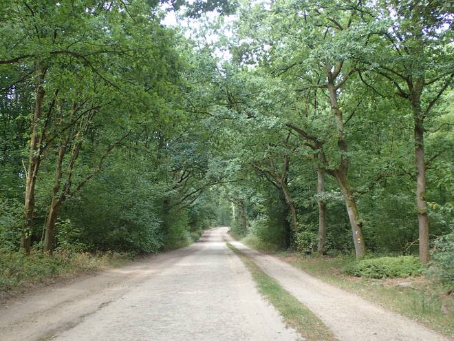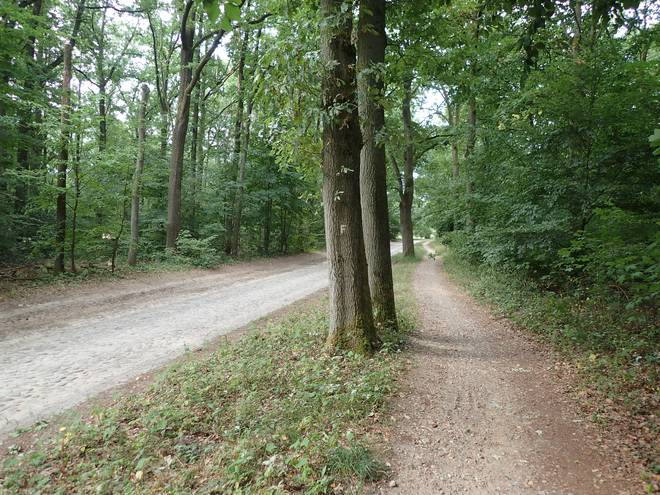 10.43 Uhr / Km 12 Auf dem Kopfsteinpflaster lief es nicht sehr gut und hier auf dem Seitenweg gerade mal besser. Aber es ging voran. |