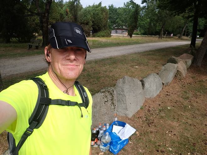 Steingrund 10.16 Uhr / Km 9 Ich holte den zweiten halben Liter raus und trank. Ich konnte dem Durst nicht mehr widerstehen. |
