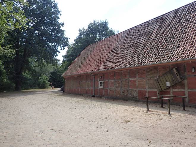 Hof Möhr 13.03 Uhr / Km 27 Ah... ein Gebäude. War das der gesuchte Hof Möhr? |