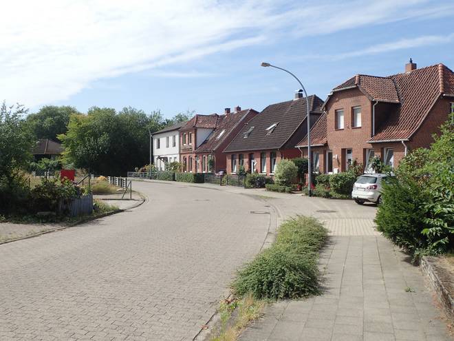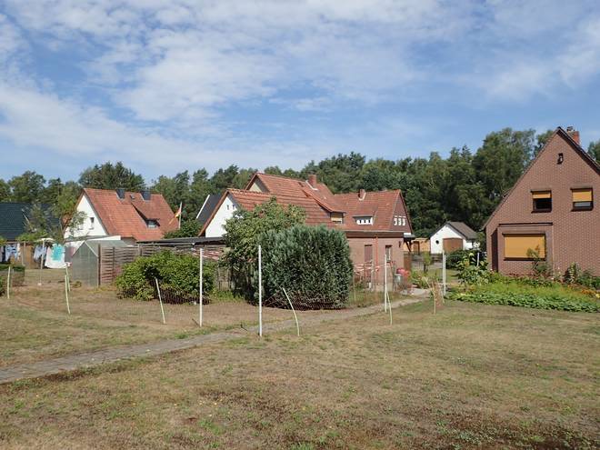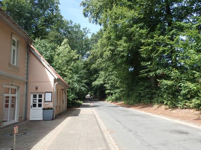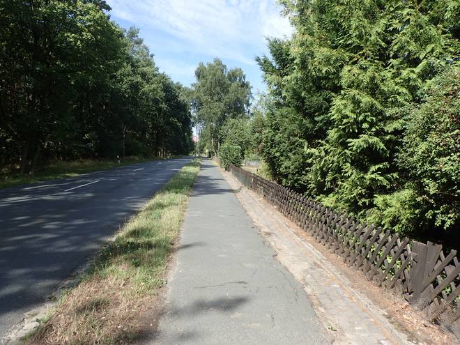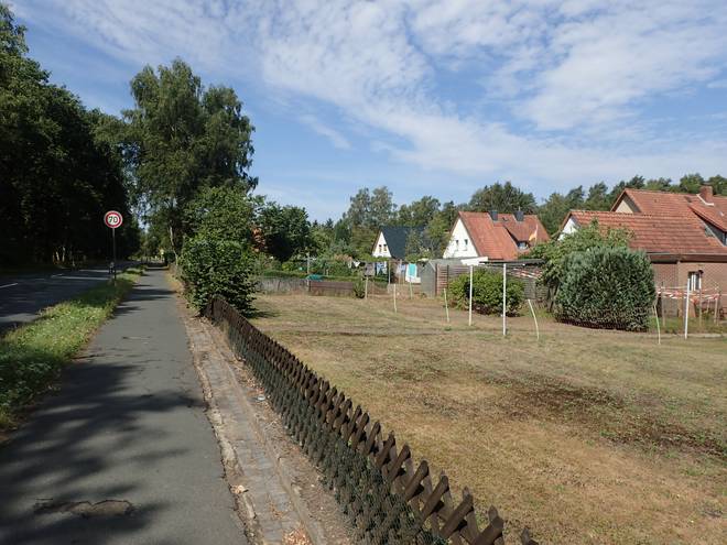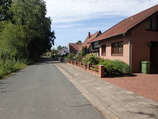 Walsrode Hermann-Löns-Straße 11.57 Uhr / Km 19 Die Sache mit der Blase an der linken Ferse nervte nun mehr und mehr. Als wenn das Vorankommen bei der Hitze nicht schwer genug gewesen wäre. |