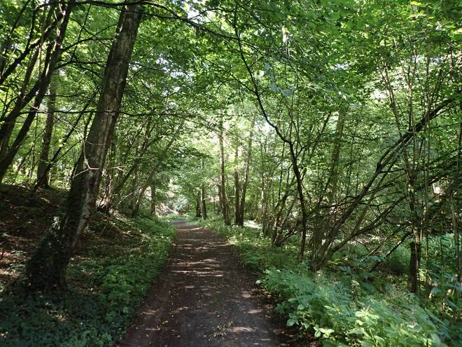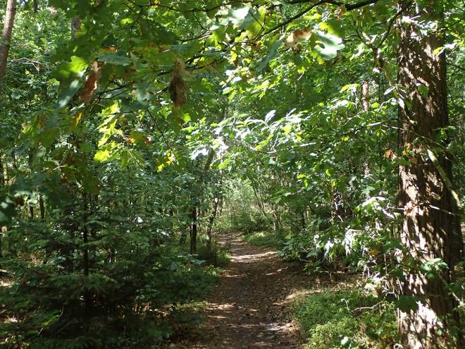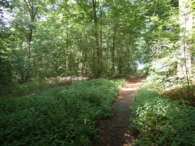 Lönsheide 10.59 Uhr / Km 13 Nach kurzem Lauf durch den Ort ging es zurück in die Wildnis. |