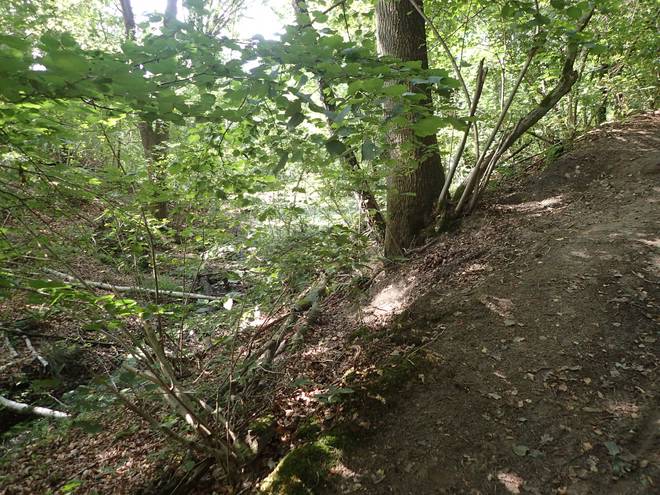 11.07 Uhr / Km 14 Mein GPS-Track meinte, es ginge geradeaus weiter, aber das war ja nicht einmal im Ansatz ein Weg. Aber da durch kam man zum Weg. |