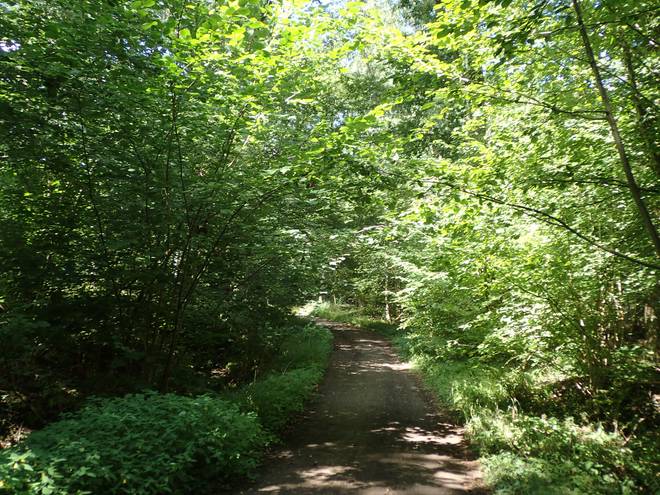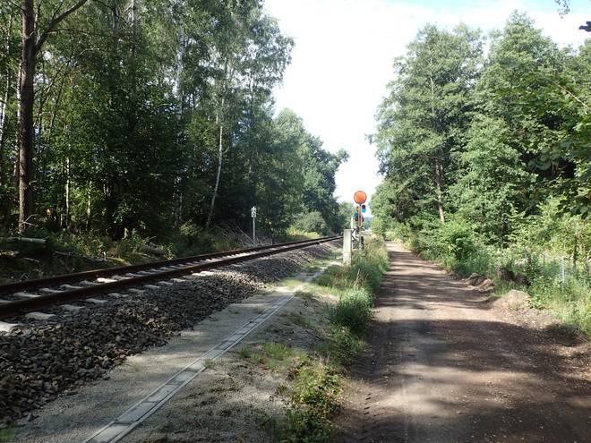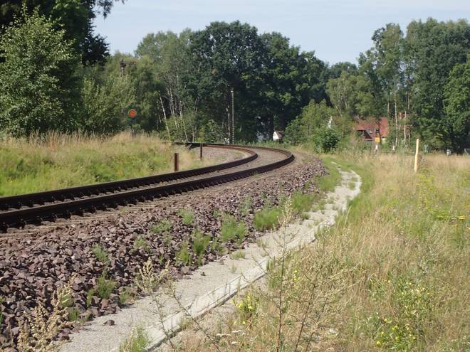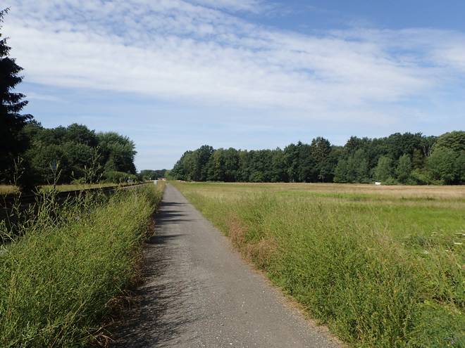 11.19 Uhr / Km 15 Nun ging es eine ganze Weile an der Bahnstrecke entlang. |