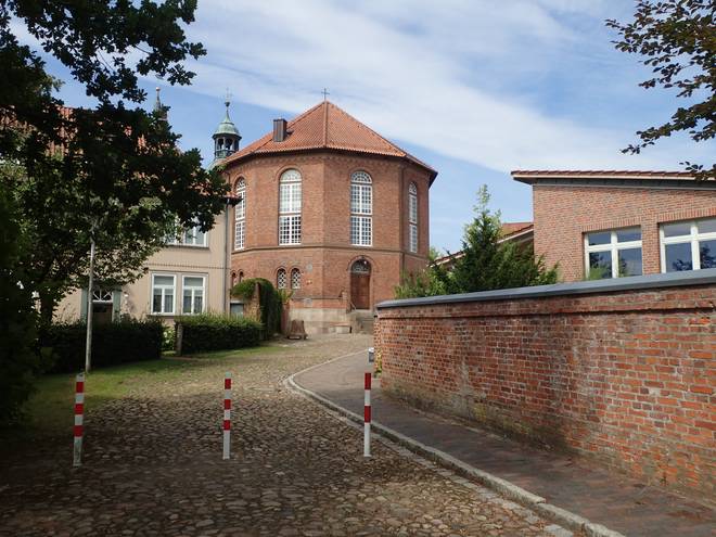 Walsrode Am Kloster 11.44 Uhr / Km 18 Das Kloster war auch in der Nähe, aber besser hinter Mauern versteckt als die Kirche. |
