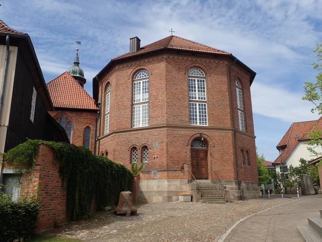 Walsrode Am Kloster 11.44 Uhr / Km 18 Wie geplant erreichte ich auf diesem Weg die Stadtkirche Walsrode von hinten. |