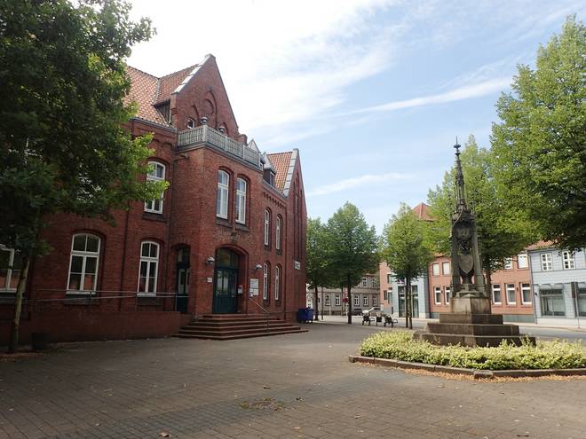 Walsrode Kirchplatz 11.45 Uhr / Km 18 Denkmal für Ludwig Harms, Walsroder Theologe. |