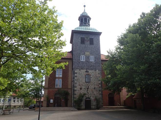 Walsrode Kirchplatz 11.46 Uhr / Km 18 Die Stadtkirche Walsrode von vorne. |