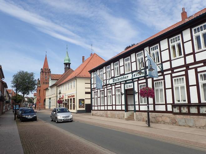Walsrode Lange Straße (B209) 11.51 Uhr / Km 18 Sieht aus wie eine Kirche oder ein altes Rathaus, ist aber eine Touristen-Information. |