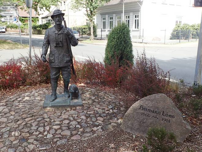 Walsrode Oskar-Wolff-Straße 11.56 Uhr / Km 19 Die Hermann-Löns-Statue von Walsrode. Nicht gerade im Stadtzentrum platziert, aber hübsch gestaltet. |