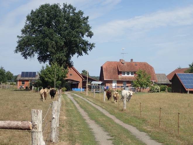 Eckernworth 12.08 Uhr / Km 20 Ganz offiziell gehört der ganze Wald hier noch zu Walsrode, aber das zählt für nicht mit zum bebauten Stadtgebiet. |