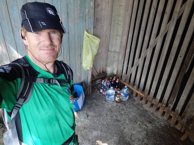 Fulde 12.17 Uhr / Km 21 Den Verpflegungsstand würde man erst riechen und dann sehen. Starker Geruch nach Schweinestall. Am Vortag hatte ich schon mehrfach an diesen Verpflegungsstand denken dürfen. Und auch hier roch es gleich am Beginn der Fläche extrem nach Mist. Aber da war nichts zu finden. |