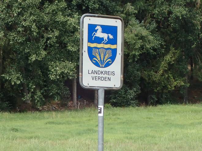 Heinser Dorfstraße (K126) 13.56 Uhr / Km 32 Nun hatte ich den Landkreis Verden erreicht. Es waren allerdings aber immer noch gut 18 Kilometer bis ins Ziel. |
