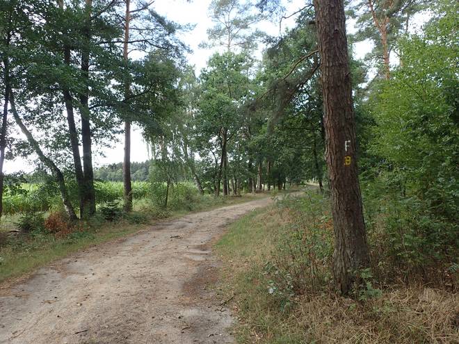 Lohheide 13.52 Uhr / Km 32 Wie gut, daß hier ein F zur Bestätigung stand, sonst wäre ich diesen Weg nicht als erste Wahl gelaufen. |