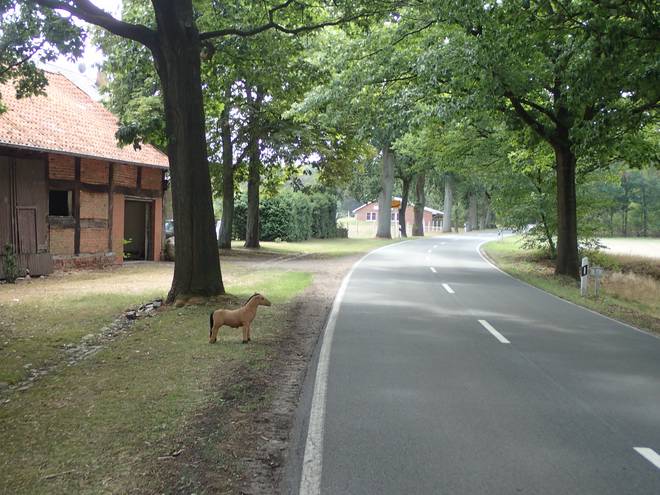 Neuenförde 14.49 Uhr / Km 38 Mehr und mehr schein es mir, als würde ich bei Leuten im Hinterhof herum wandern. |