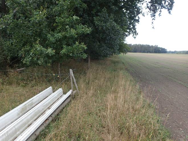 Neuenförde 14.52 Uhr / Km 39 Okay... über den Zaun rüber. Falls mich jemand fragt, würde ich auf doof tun und den GPS-Track vorzeigen. |