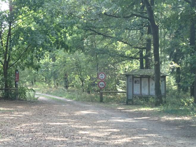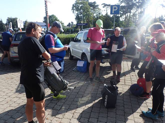 10.40 Uhr / Km 5,2 Hinter der Informations-Tafel gab es beim Freudenthalweg-Ultramarathon einen Stand mit Verpflegung. Nun nicht, aber ich hatte ja etwas zu trinken im Rucksack. |