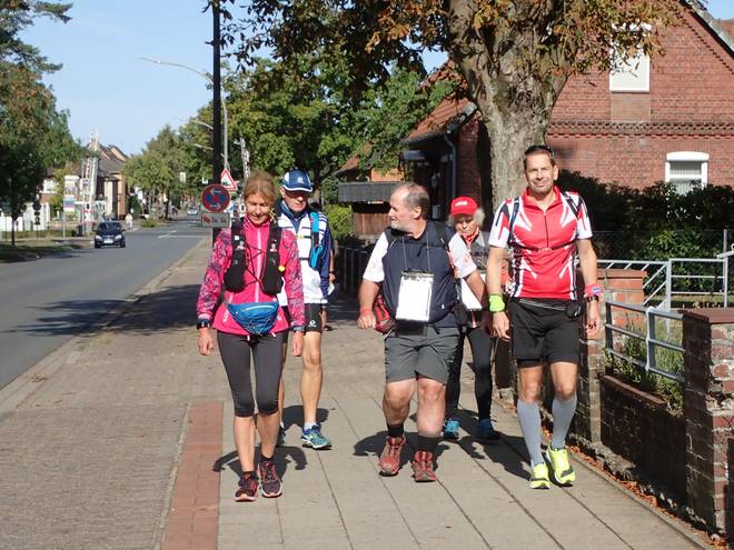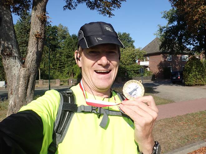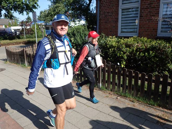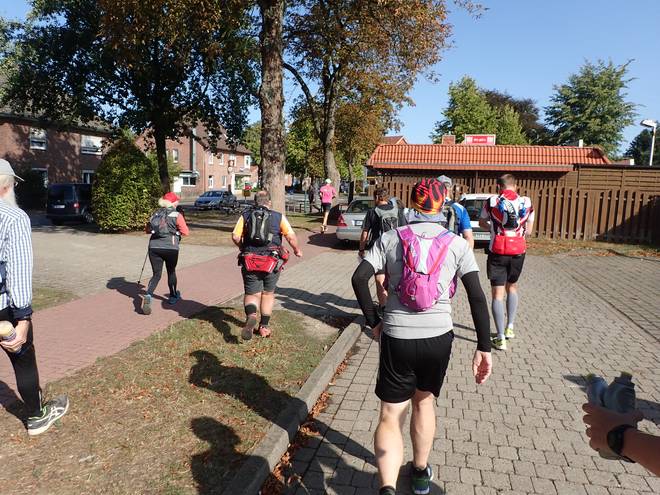 Eine-Welt-Kirche Schneverdingen 10.11 Uhr / Km 0,8 Ich ließ es ganz langsam und ruhig angehen. Zwei Wochen vorher beim Mauerlauf Berlin nach 106,57 Kilometern raus, davor die grausame Hitze und am Vortag der Marathon in Hamburg.Wohldorf. |