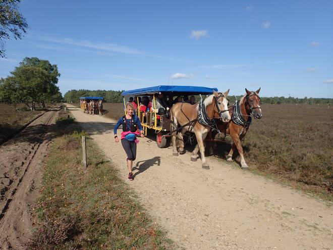 10.24 Uhr / Km 2,6 Statt zu laufen hätte man auch den Pferdewagen nehmen können. |