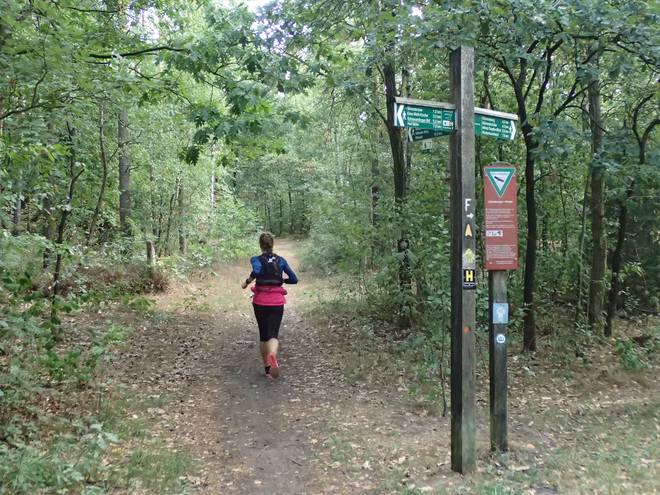 10.22 Uhr / Km 2,3 Wanderwege in alle möglichen Richtungen. Hier in der Ecke kannte ich mich vom Lauf auf dem Freudenthalweg aus. Das war einfach für mich. |