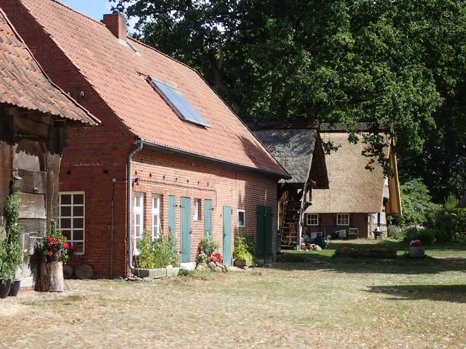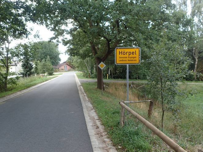 Brandenburger Straße Hörpel 13.07 Uhr / Km 23,1 Hörpel hatte einige hübsche Ecken. Nicht vergleichbar mit Wilsede, aber ich guckte mich ein wenig um. |