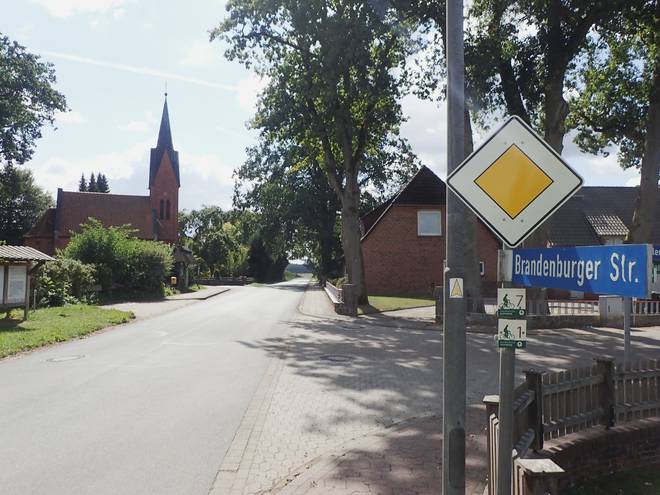 Brandenburger Straße Hörpel 13.08 Uhr / Km 23,2 Die St. Pauli Kirche Hörpel. Sehr hübscher Bau. Leider geschlossen. |