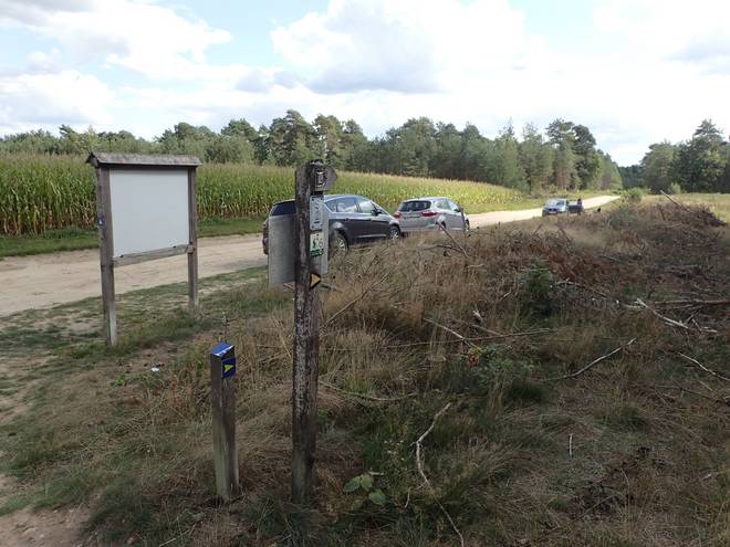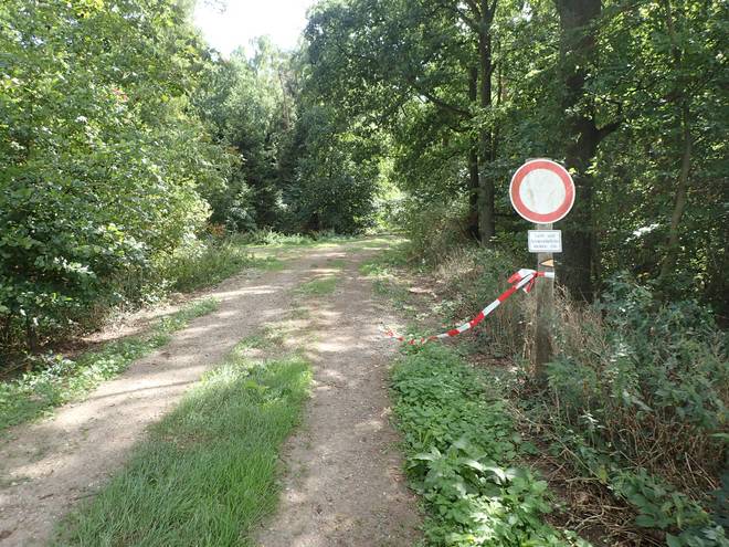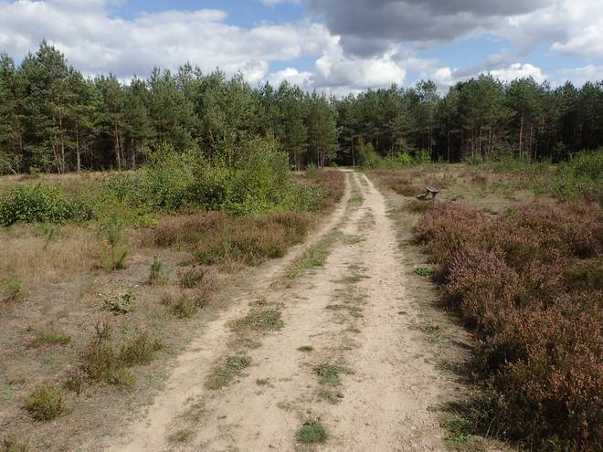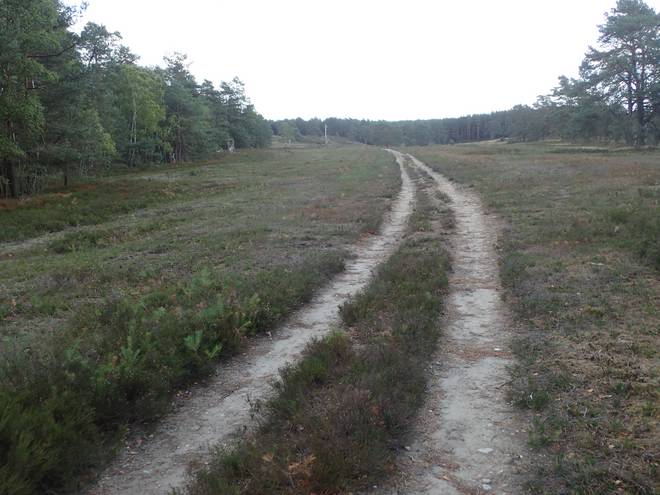 Schwindebecker Heide 13.47 Uhr / Km 28,7 Außerdem vertraute ich den Markierungen entlang der Strecke, die deutlich besser waren als am Freudenthalweg. Ja, das war die Strecke. Das war am Anfang und Ende des Cross-Stückes klar zu sehen. |