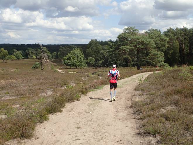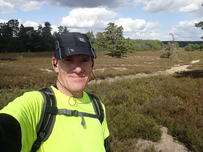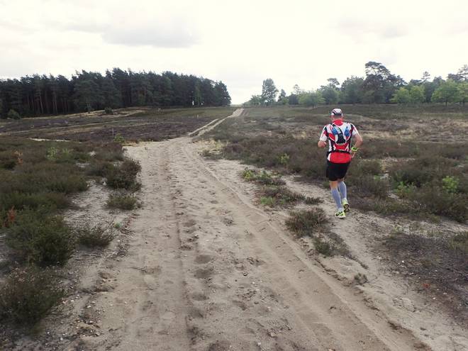 Schwindebecker Heide 13.58 Uhr / Km 30,1 Markus hätte ja auch einfach mir hinterher laufen können, aber so richtig wollte er mir (meinem GPS-Track) nicht trauen. |