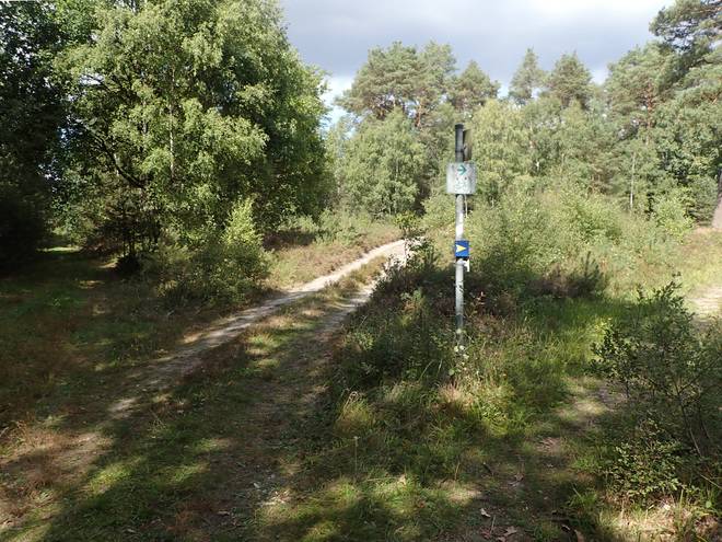 13.59 Uhr / Km 30,2 Die blauen Pfeile des Heide-Panorama-Weges konnte ich mir schon einmal für in zwei Wochen später, dann für den Heide-Diplom Ultramarathon, merken. da würde ich hier wieder vorbei kommen. |