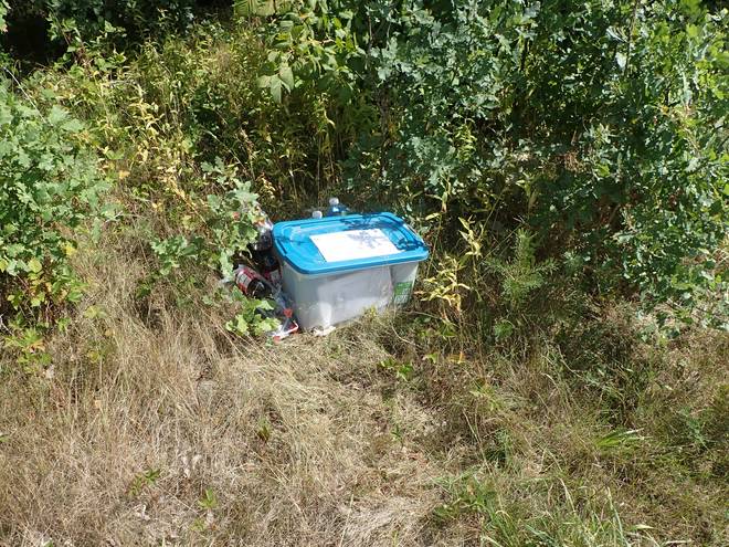 14.14 Uhr / Km 31,9 Irgendwo hier sollte dieser Verpflegungsstand sein. Links im Gras, unbemannt. |