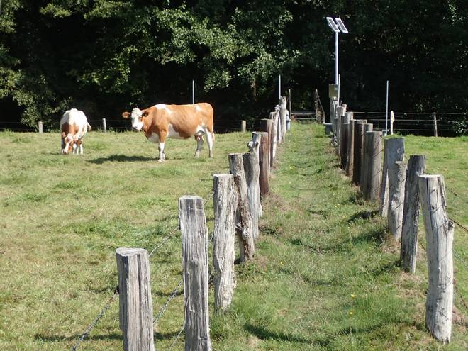 13.03 Uhr / Km 25,2 Ob die Kühe das so toll finden, daß der Weg hier ihre Weide zweiteilt? |