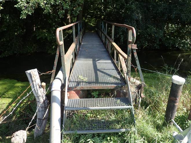 Luhe 13.03 Uhr / Km 25,2 Die Brücke sieht aus wie eine leicht verrostete Variante der pinken Brücke aus, die später noch kommen sollte... und die früher schon kam. |
