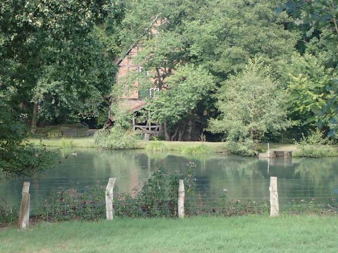 Bahnhofstraße Soderstorf 13.12 Uhr / Km 26,4 Blick über den Mühlenteich zum Mühlenhof. |
