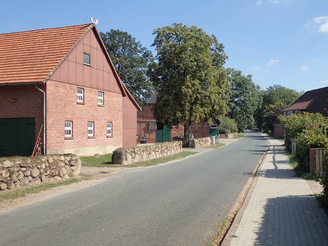 Wohlenbütteler Straße Soderstorf 13.16 Uhr / Km 27,3 Nun kam wieder diese elend lange Straße in Richtung der Nekropole. |