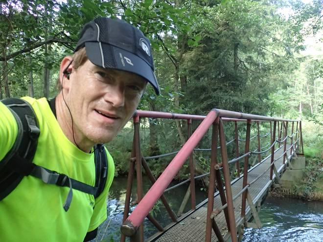 Luhe 13.30 Uhr / Km 29,1 Die pinke Luhe-Brücke. Noch ein paar Läufe hier und die Brücke wird noch Kult. |