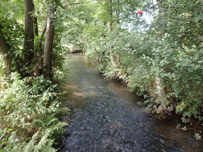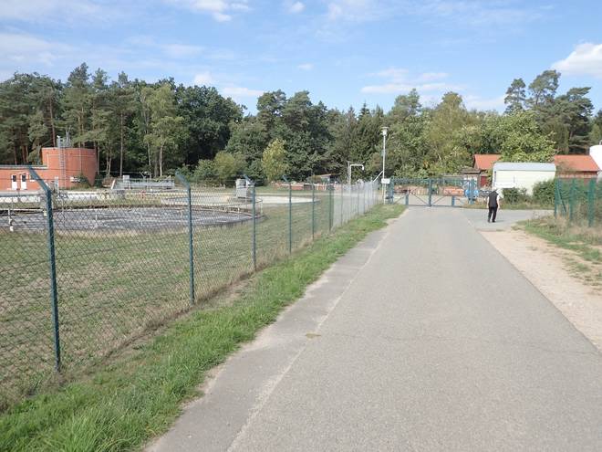 13.52 Uhr / Km 32,5 Auf der Lila Krönung mußte man dafür nicht an diesem stinkenden Klärwerk vorbei. |