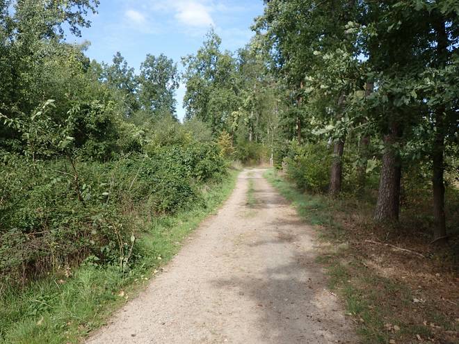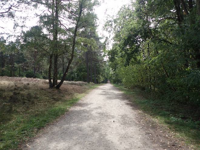 13.46 Uhr / Km 31,6 Acht Kilometer Königinnen-Weg hatte ich direkt nach dem Start schon erledigt, es fehlten noch 2,8 Kilometer zurück zum Parkplatz Kronsbergheide. Dann wäre auch der zweite der drei Wege erledigt. |