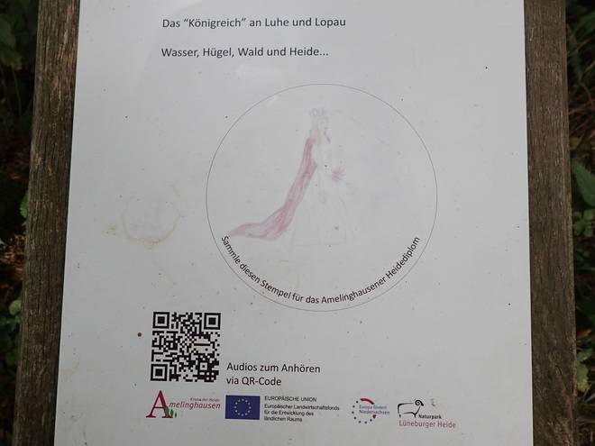 Peter-Ehlers-Weg Parkplatz Kronsbergheide 14.08 Uhr / Km 34,4 Damit hatte ich dann auch den Königinnen-Weg abgelaufen und alle Stempel gesammelt. |