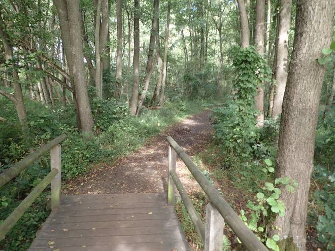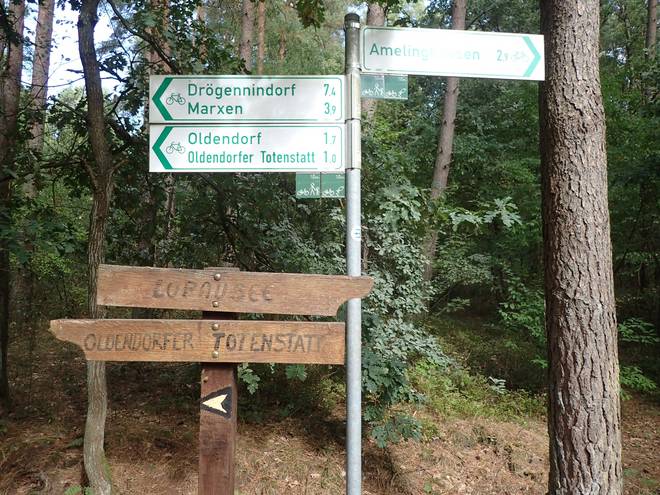 13.58 Uhr / Km 33,3 Von hier bis ins Ziel liefen der Königinnen-Weg und der Sagenhafte Hünen-Weg auf gleichem Weg. Hier käme ich zum Finale später noch einmal vorbei kommen. |