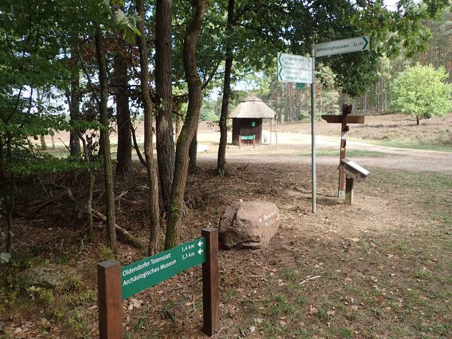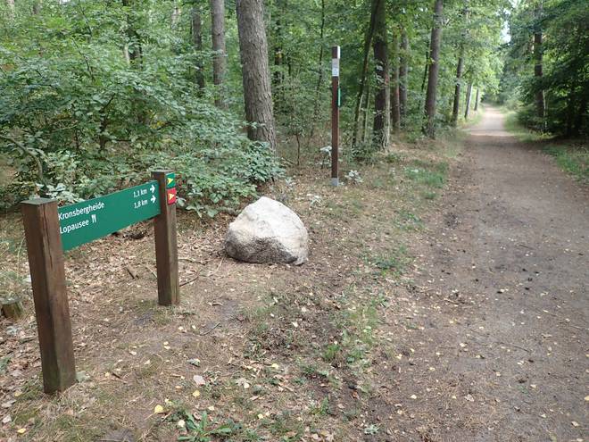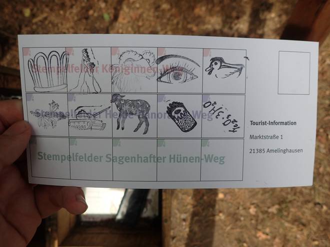 Kronsbergheide 14.04 Uhr / Km 34,0 Nun hatte ich auch die fünf Stempel des Königinnen-Weges zusammen. Blieben nur noch fünf Stempel des Sagenhaften Hünen-Weges, der ja noch folgen würde. |